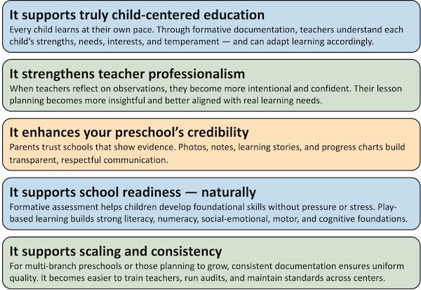 This is where high-quality assessment — especially formative assessment — becomes a defining pillar of any preschool aiming to position itself as premium, holistic, and future-ready.